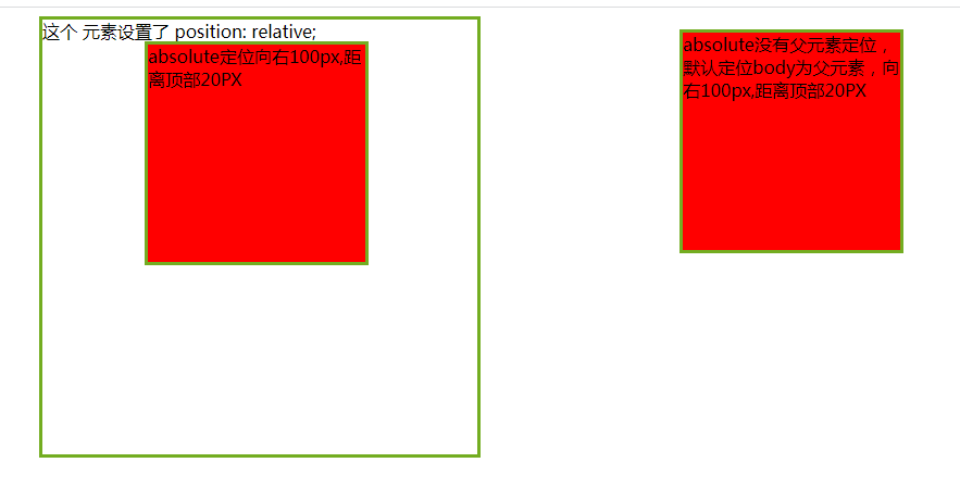 35.             absolute沒有父元素定位,默認(rèn)定位body為父元素,向右100px,距離頂部20PX
