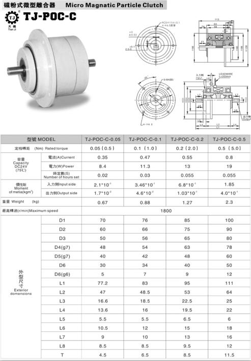 品牌:天機牌,類型:小型雙出軸磁粉離合器,型號:TJ-POC-C,包裝:紙箱+泡沫