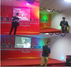 隨后幾位“明星”帥哥的歌聲讓大家陶醉其中,一個(gè)“猜數(shù)字”游戲與全體人員進(jìn)行了互動(dòng)現(xiàn)場(chǎng)氣氛被拉至高峰