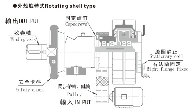 外殼旋轉(zhuǎn)磁粉離合器安裝方式示意圖如下: