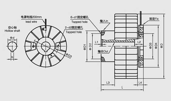2、安裝時應注意區(qū)別離合器的輸入和輸出軸。