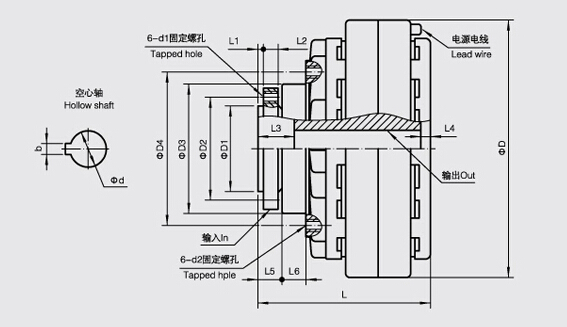 內(nèi)殼旋轉(zhuǎn)磁粉離合器安裝方式示意圖如下:
