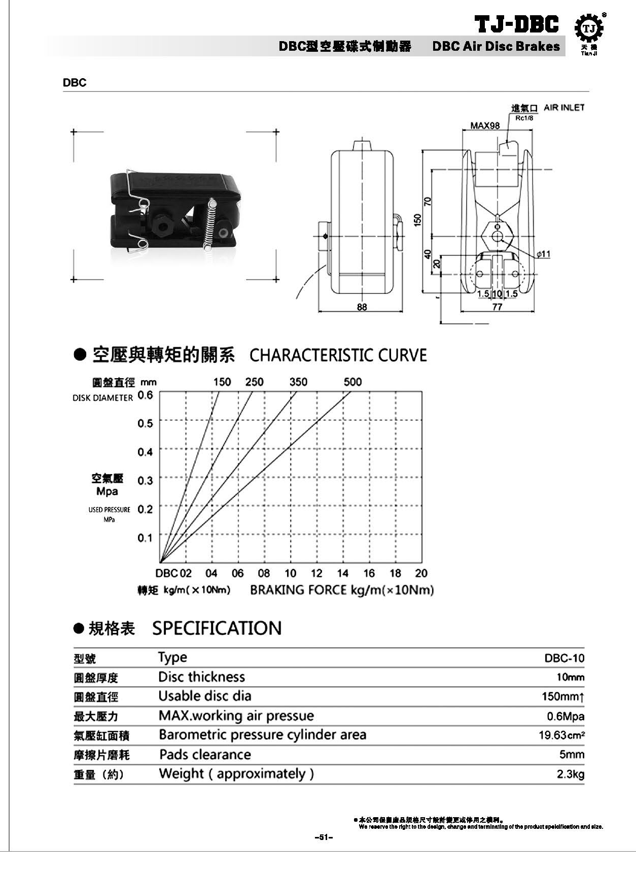 空壓碟式制動(dòng)器,DBC型空壓碟式制動(dòng)器